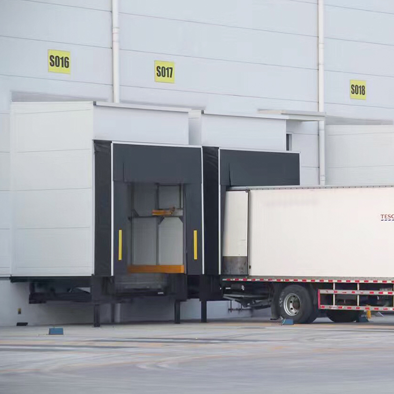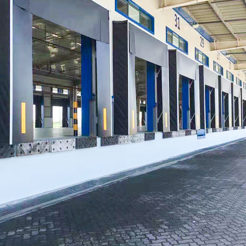 När lastbilen nuddar kajen för att lasta gods, kan ett hamnskydd linda lastbilens baksida för att säkerställa en nära och dammtät miljö.